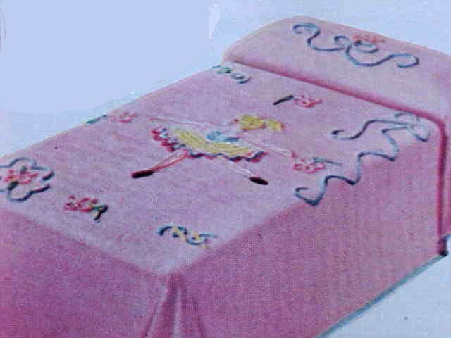 "Ballerina" bright multicolor design in high pile cotton chenille. Twin size $5.74 or full size $6.77. |