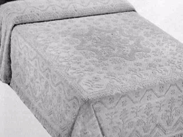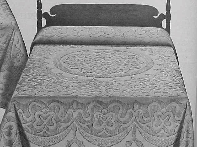"Virginia Reel" Coverlet is a faithful reproduction of the original 1821 pattern. White or ivory. Full or twin $12.70 each. |