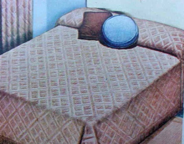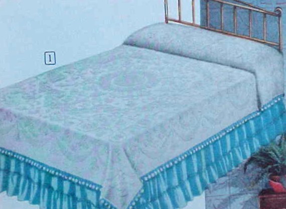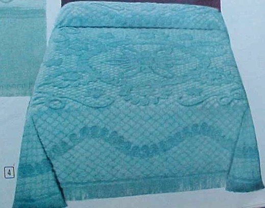 Diamond Motif on close as possible cotton chenille background. Colors: spring green, medium capri blue, spice beige or white. Full or twin $4.94 each. |