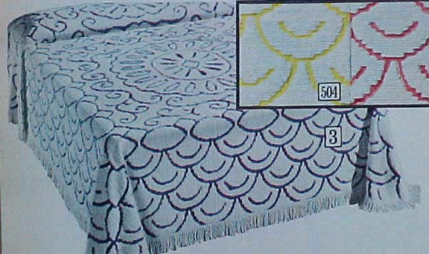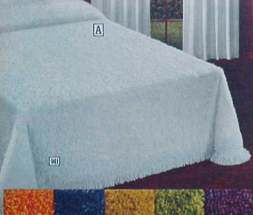 "Cranbrook" a waveline tufted spread with fringed border at a budget price. Colors: strawberry burgundy, winter white, copen blue. Twin or Full $2.99 each. |